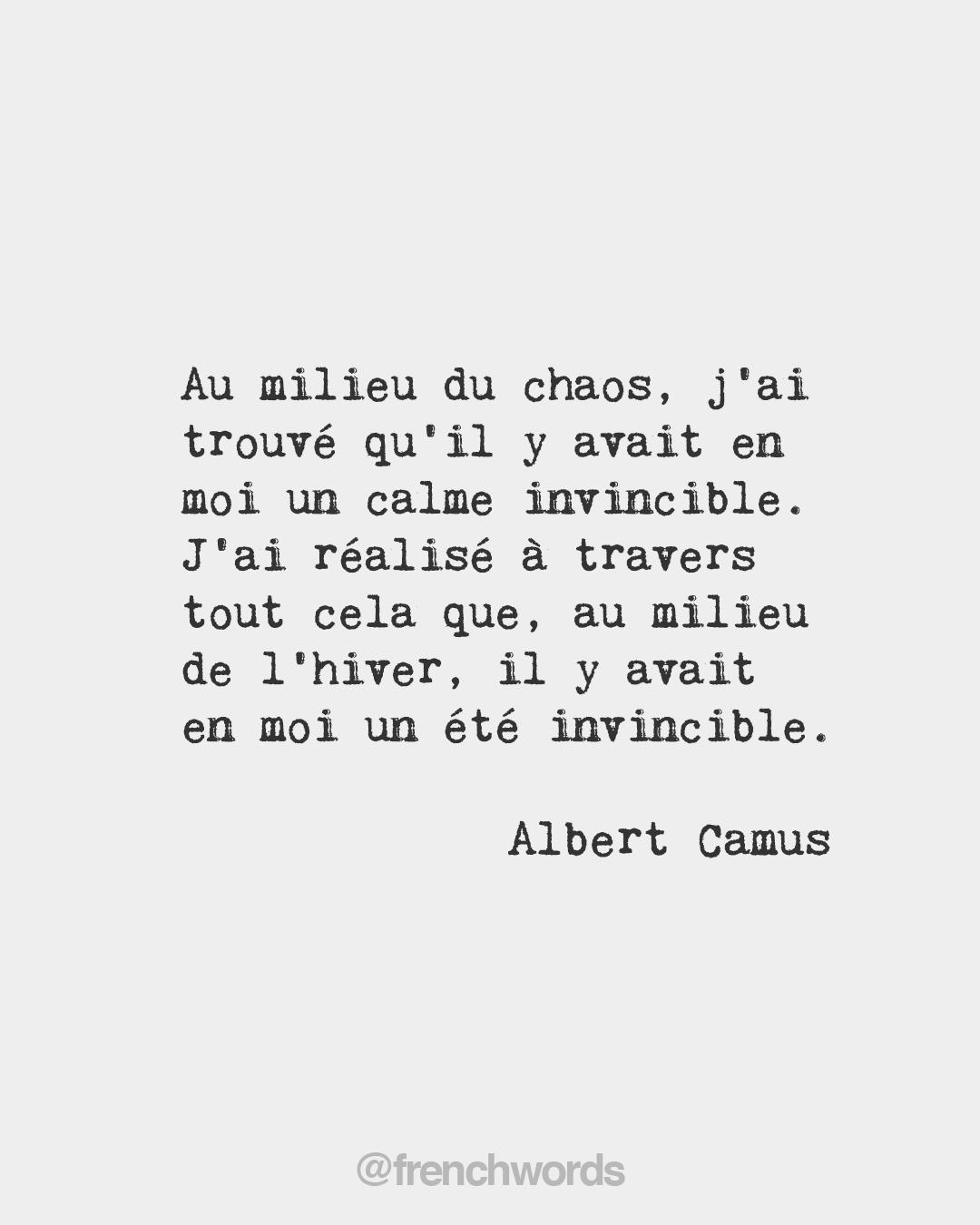 Albert Camus Quotes In French French quote of Albert Camus about Loving | French quotes, Quotes : For Albert Camus there were always two tyrants He himself participated in the French underground during World War II, and in 1957 he quoted the words of Richard Hilary: “We were fighting . 8, Issue. 2, p. 99. This handy guide places Albert Camus’ The Stranger, one of the seminal texts of existentialism and twentieth-century literature in general, in the context of French and .