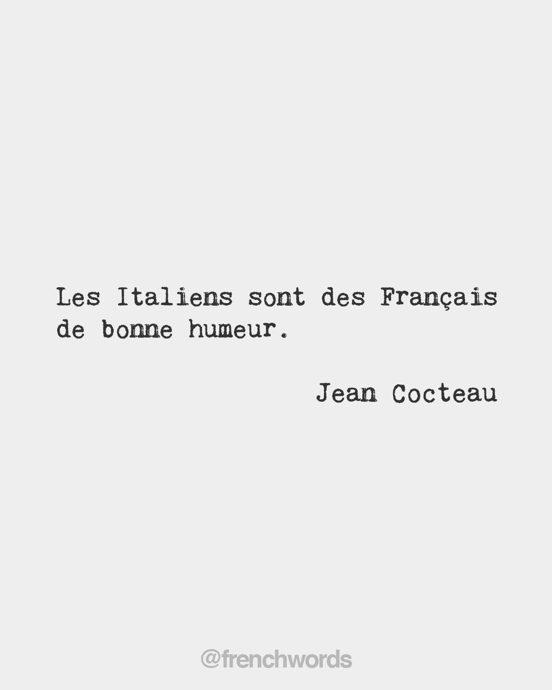 Jean Cocteau Quote: “French people are Italian people in a bad mood.”