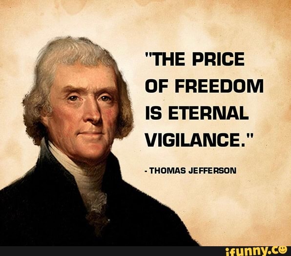 The price of freedom is eternal vigilance.โ Thomas Jefferson
